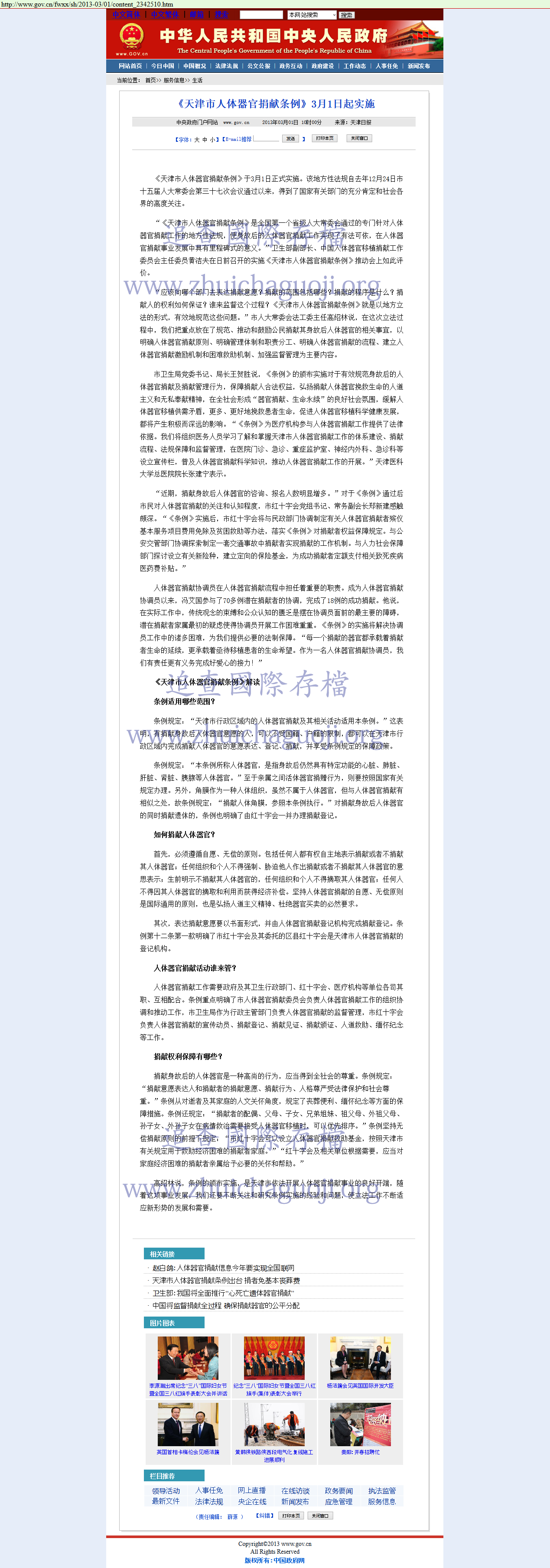 [3]《中央政府门户网站》2013年3月1日 “《天津市人体器官捐献条例》3月1日起实施”来源:天津日报
