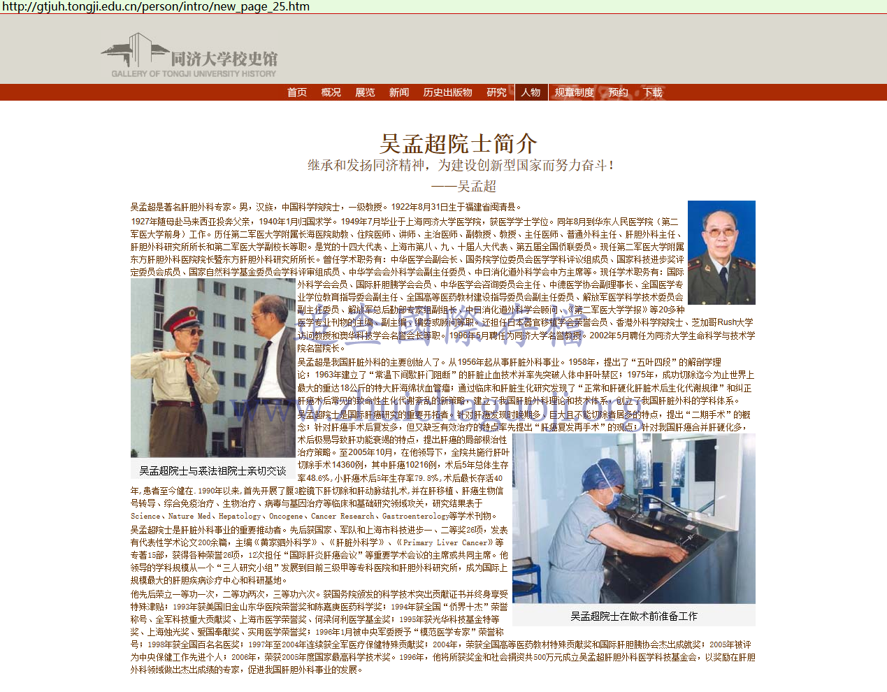[13]《同济大学校史馆》吴孟超院士简介 继承和发扬同济精神,为建设创新型国家而努力奋斗!