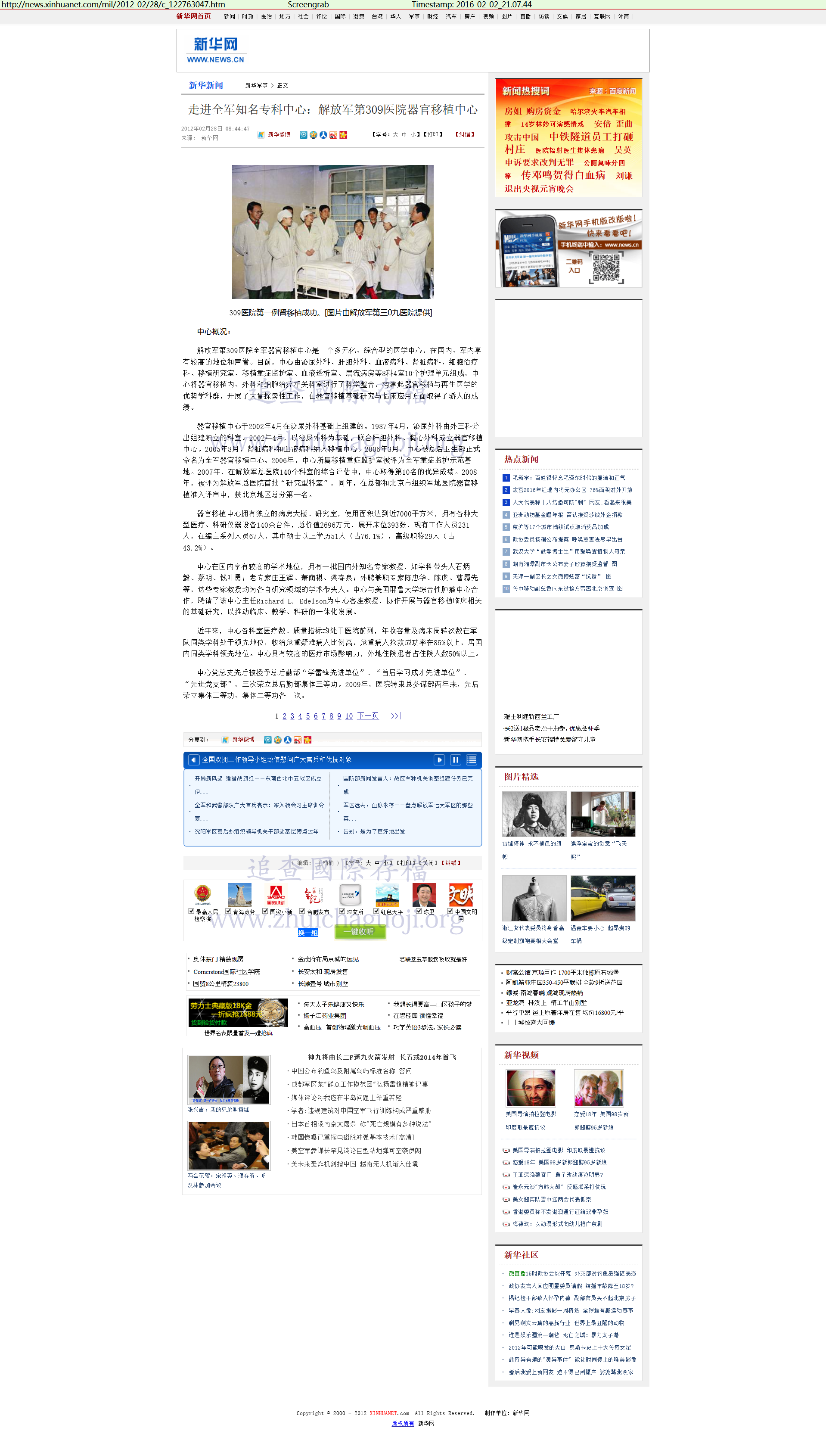 [19]《新华网》走进全军知名专科中心:解放军第309医院器官移植中心 2012年02月28日